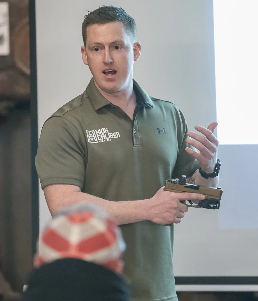 My name is Brendan Murphy, owner and instructor at High Caliber Services. I am a 10-year veteran of the United States Marine Corps Infantry, having served as both an enlisted Marine and Officer. During my time in the Marine Corps, I achieved the rank of Captain, held the billet of Company Commander, and trained in the following occupational specialties: